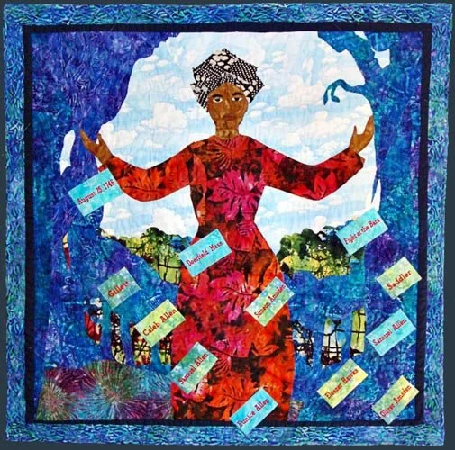 Peggie draws upon her rich heritage of quiltmakers and storytellers, combining the two art forms in her creations.